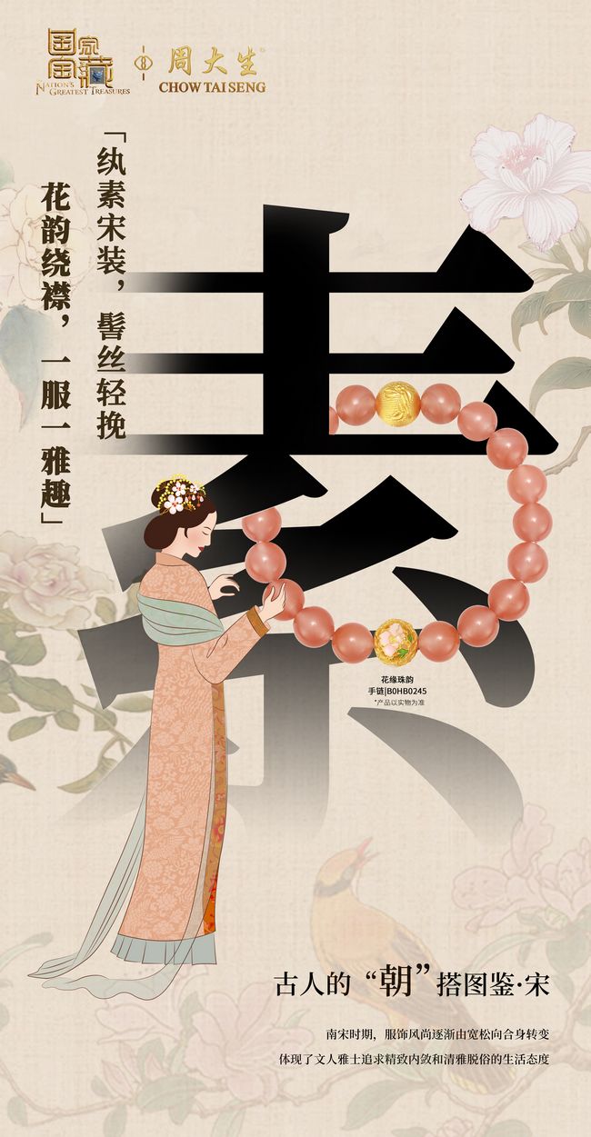 一捧花束,携着跨越千年的祝福,诉说着南宋宫廷的雅韵。周大生x国家宝藏联名系列“繁花似锦”套系手串以对南宋文化的深刻理解和现代演绎,搭配多样配珠材质,完美匹配不同客群风格,与佩戴者们共享南宋宫廷那份优雅与精致。
