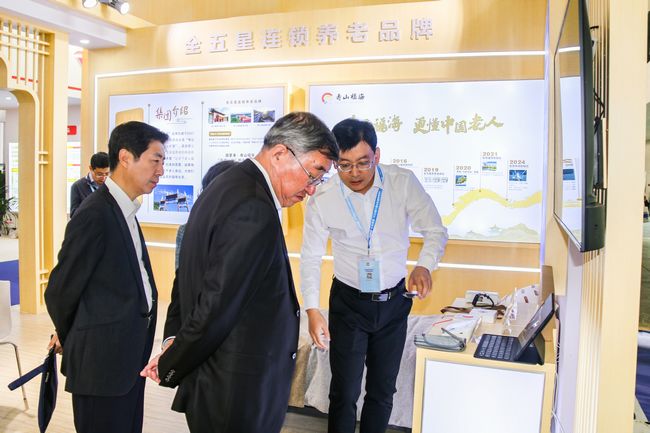 作为北京唯一的全五星连锁养老品牌,寿山福海以“老字号、新发展“为口号,携新中式养老服务理念,惊艳亮相本届老博会,赢得了广泛关注。北京市政府党组成员、市老龄产业协会会长隋振江,以及北京市民政局副局长郭汉桥等领导莅临寿山福海展台,与集团董事长刘凯安、总裁刘玥进行深入交流。