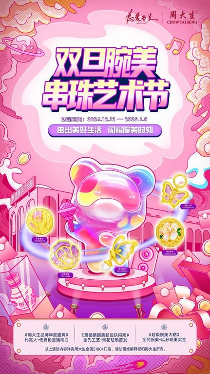 双旦佳节的悄然临近,让岁末寒冬增添了几分生机与热闹。而在这严寒冬日,周大生双旦腕美串珠艺术节也如期而至,串出美好生活,闪耀腕美时刻,为广大消费者送去双旦暖冬礼遇。活动期间前往周大生全国线下门店消费,将有机会获得双旦限定奖品,让新的一年得偿所愿,岁岁无忧。除了上述活动,周大生在双旦期间还推出了小红书“超级腕美大晒”活动,届时还将送出丰厚的现金好礼。周大生的双旦暖冬礼遇远不止于此,参与“腕美跳一跳”互动游戏就有机会赢取黄金金块、串珠盲盒、暴富金钞等“金”喜好礼,感受节日的温馨与喜悦。